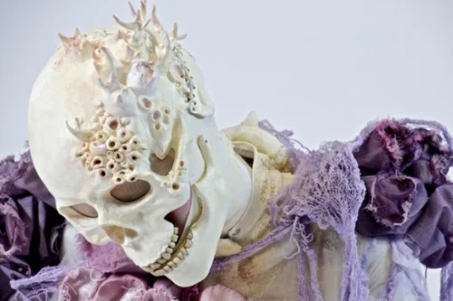 Revolving around the process of coral bleaching that results in the disappearance of coral reefs, the design draws parallels between the skeletal similarities of coral and humans, despite their imbalanced coexistence in the world.