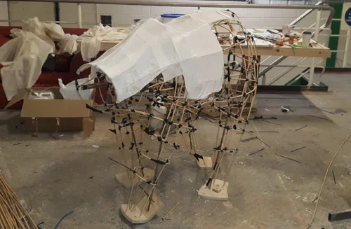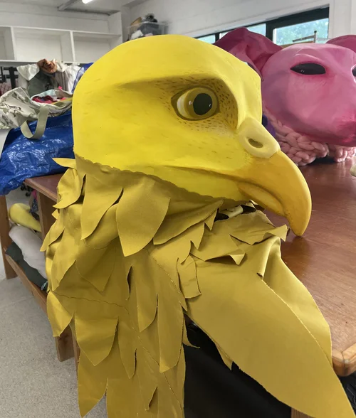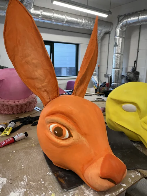 Creating oversized animal headpieces and costumes for the Urdd National Eisteddfod ceremony, alongside designer and maker Efa Dyfan.